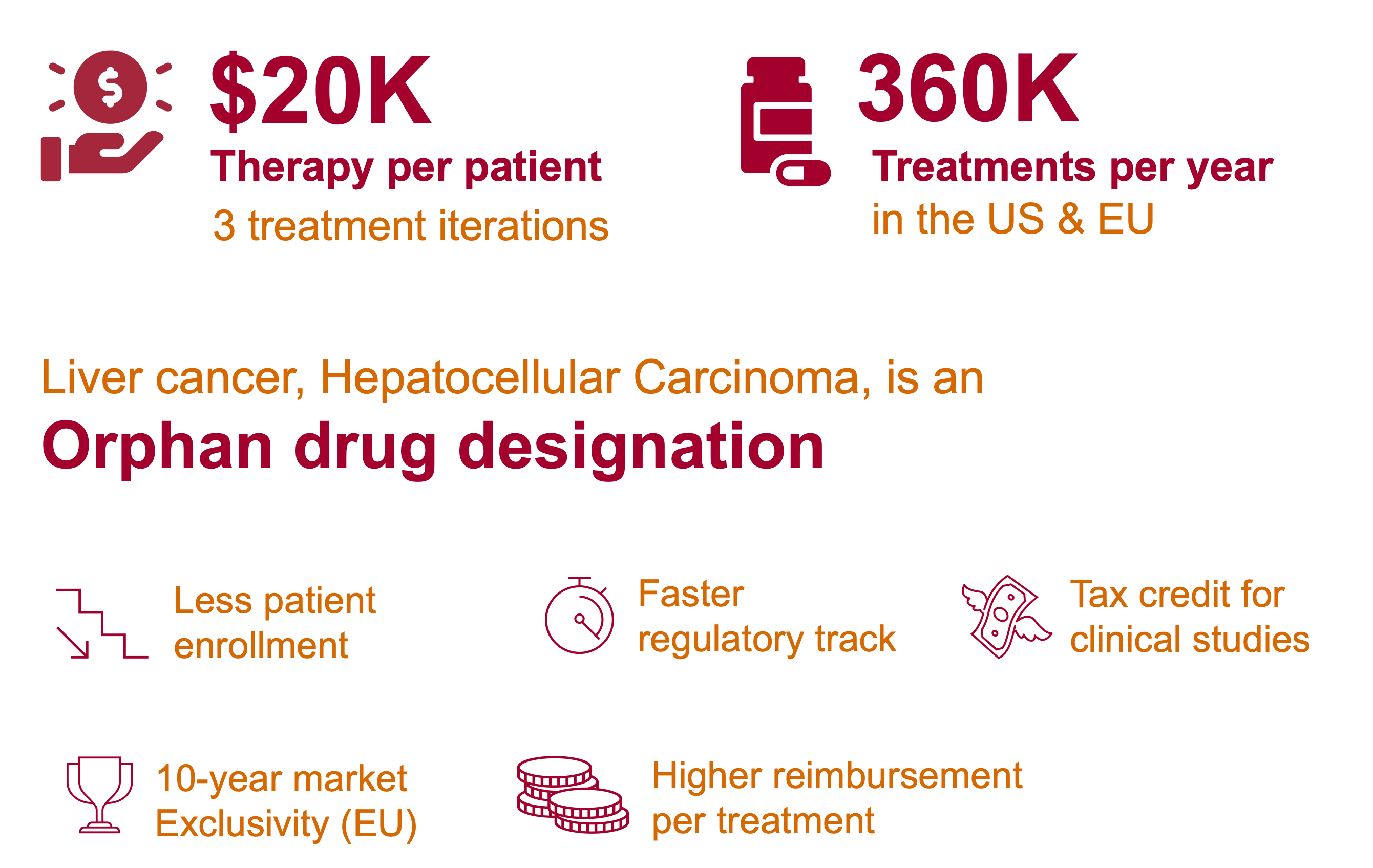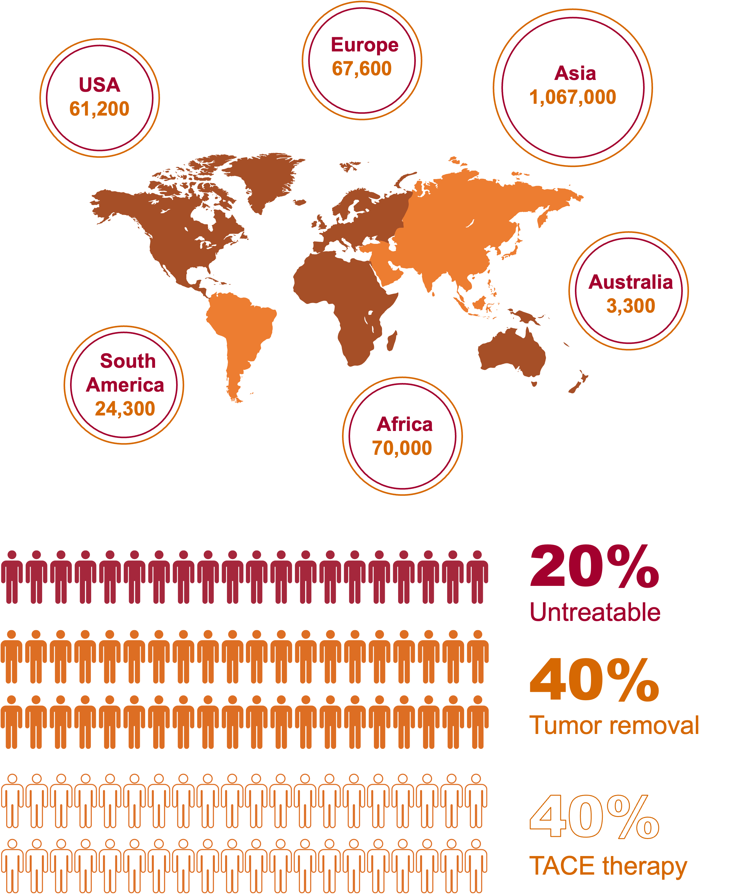 With over 120,000 patients in the US & EU alone, liver cancer increase rapidly in a 14% CAGR → 360,000 treatments (3 per patient in average)